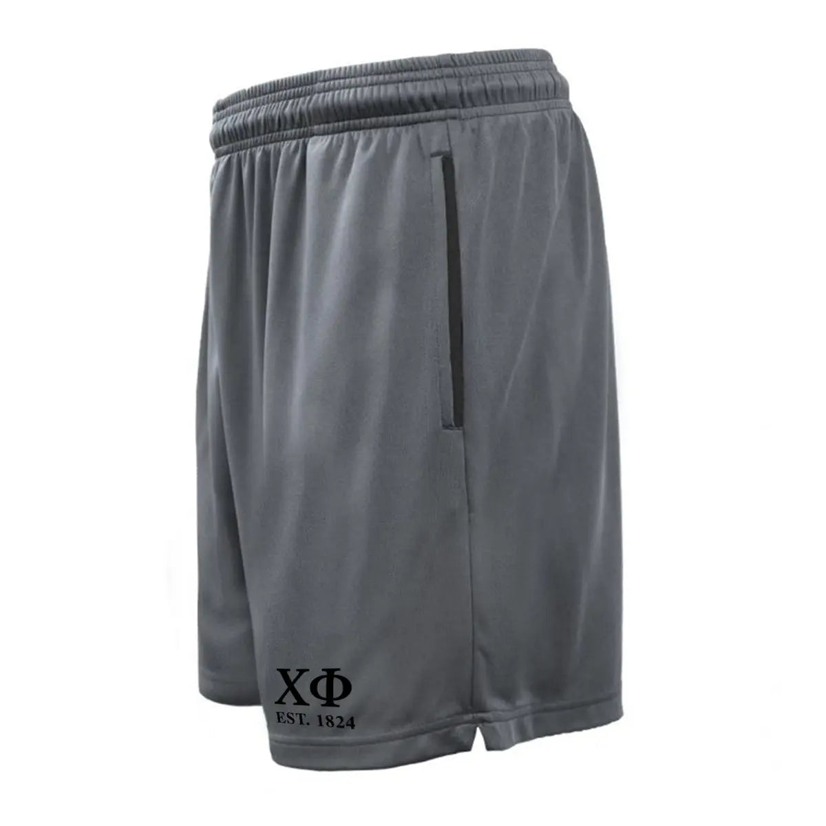 Introducing the Chi Phi 7in Grey Pocketed Shorts - the perfect blend of comfort and style for any fraternity member. These sleek grey shorts feature a 7-inch inseam and contrasting side pockets, perfect for wearing on the court or around the house. Proudly displaying the Chi Phi letters and establishment year, these shorts allow brothers to represent their fraternity with pride. Whether you're hanging out on campus or participating in chapter events, these versatile shorts are a must-have addition to any wardrobe.