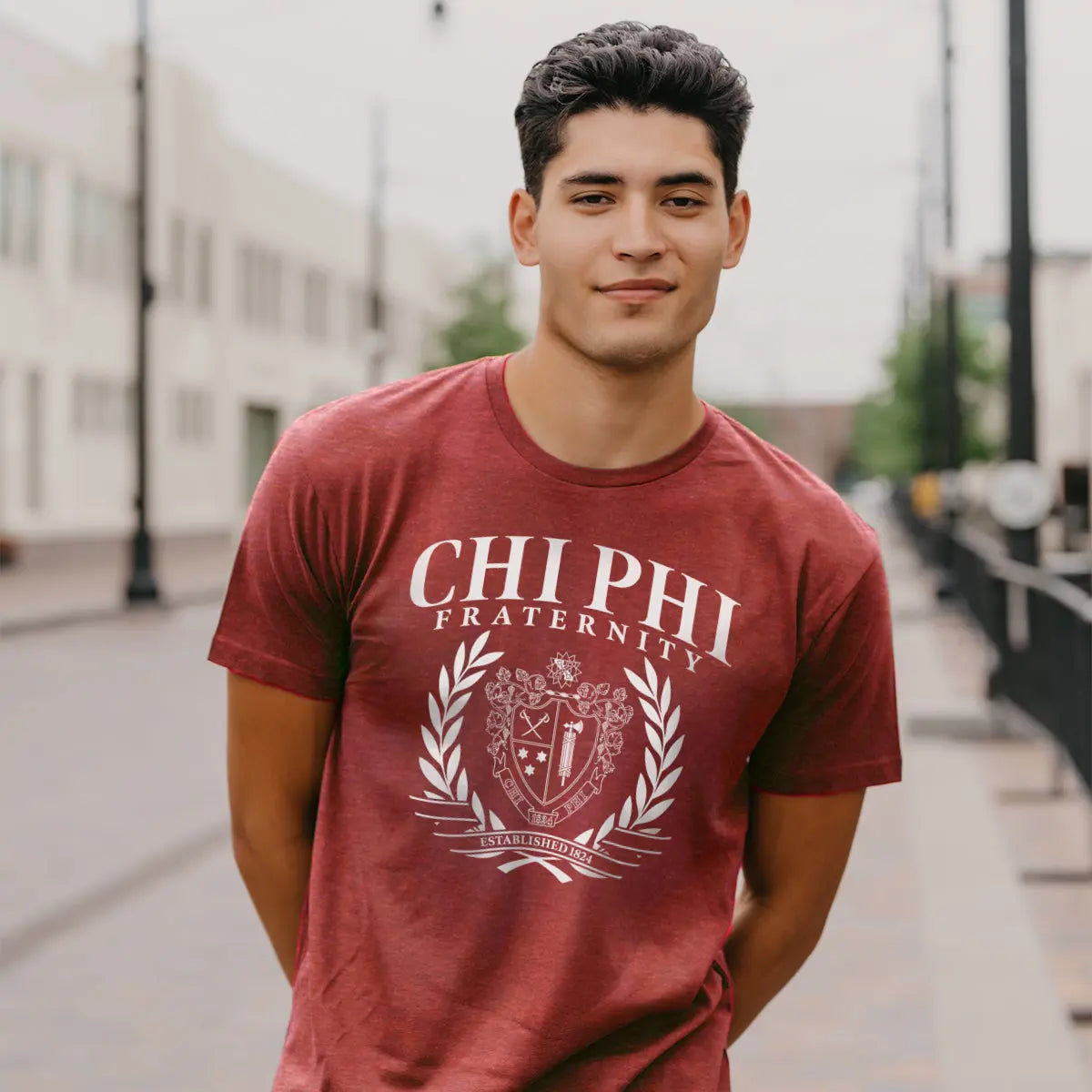 This Chi Phi tee blends a classic collegiate design with modern comfort. Printed on a premium cotton-poly blend tee, it features Chi Phi's official crest framed by bold typography and traditional laurel elements. The fabric is ultra-soft and breathable with a modern, athletic fit. Whether you're headed to a chapter event or just hanging out, this tee is an easy go-to.