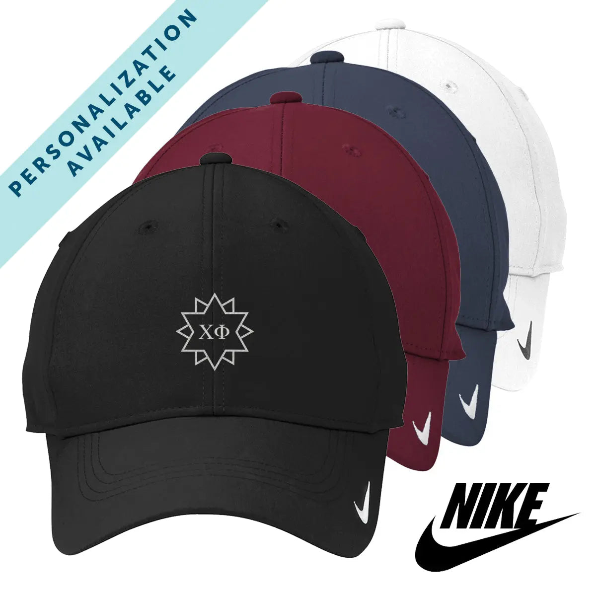 Like showing off Chi Phi? Do you like to have some brand recognition? Then it is time you pick up our Nike Dri-FIT Performance Hat! This slick hat has Chi Phion the front and a Nike Swoosh symbol on the side. The hat also features moisture wicking fabric so you can endure the most challenging workouts! If you are ready to flaunt your fraternity in style, add this Nike Dri-FIT performance hat to your collection. Choose from black, white, maroon, or navy to match this ball cap to your own personal style.