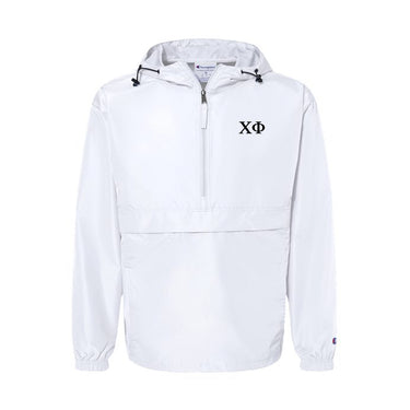 This Chi Phi Champion windbreaker is sleek and durable to last you through your college days! Whether you're caught in the rain on campus or celebrating a windy win for your school this wind and water-resistant jacket is all you'll need. This windbreaker comes with subtle Chi Phi Greek letters on the left chest.