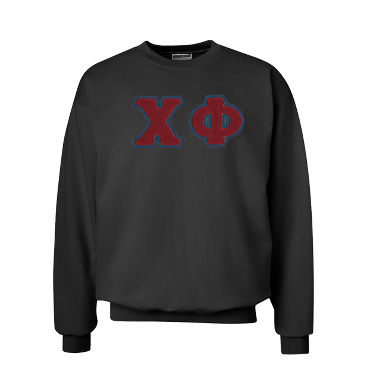 Chi Phi Black Crew Neck Sweatshirt with Sewn On Letters