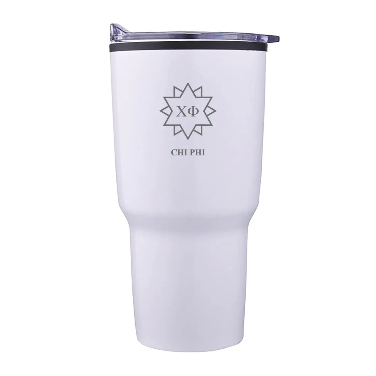 Keep your drink cold and look good doing it with this Chi Phi Tumbler! The Chi Phi symbol and fraternity name have been laser engraved on this BPA free, aluminum tumbler. This tumbler holds 30 oz, fits in most cupholders, and can keep your drinks cold for up to 4 hours! This will be your new go-to for on-the-go beverages!