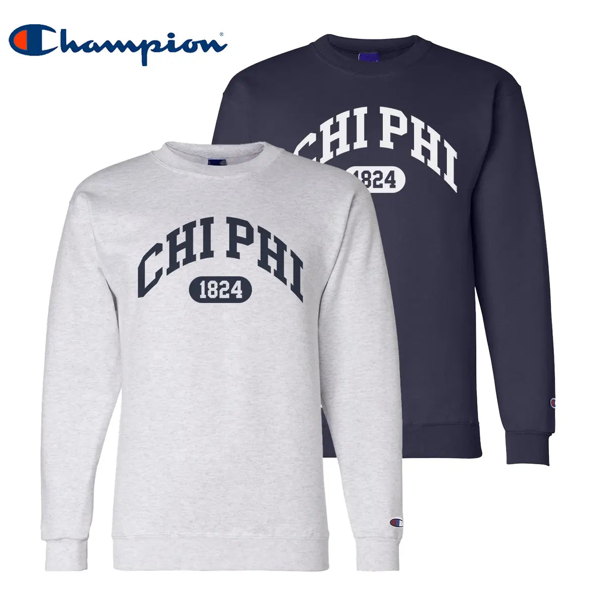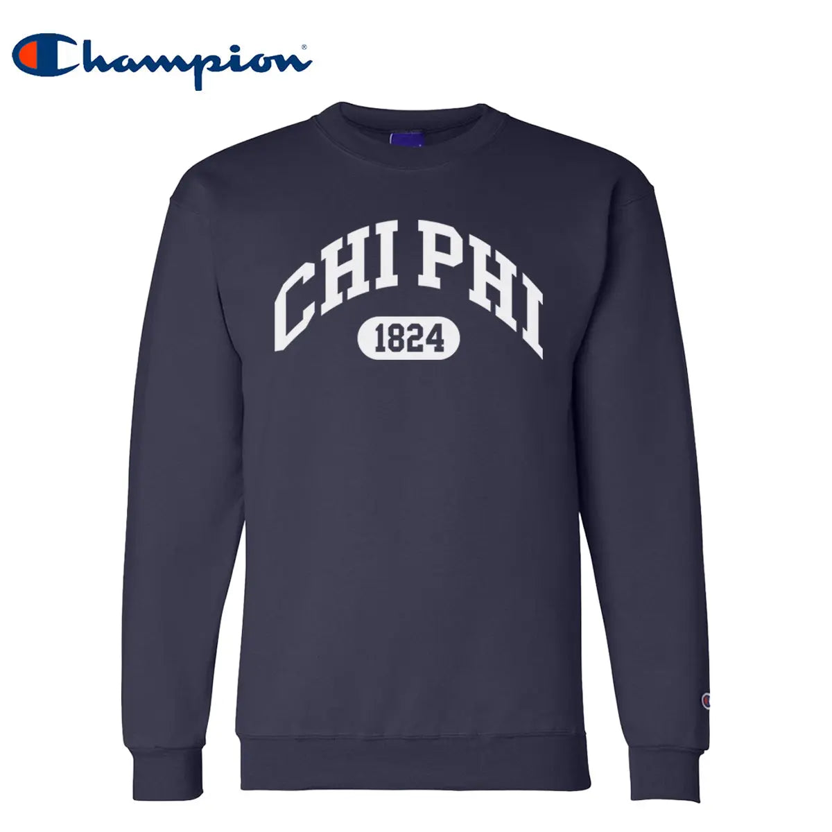 Rep your fraternity in timeless style with the Chi Phi Champion Collegiate Crewneck. Choose between gray and navy in this officially licensed sweatshirt featuring the Chi Phi name arched across the chest with the founding year proudly displayed underneath. Whether you're heading to class, lounging at the house, or showing out on game day, this sweatshirt has your back in comfort and style.